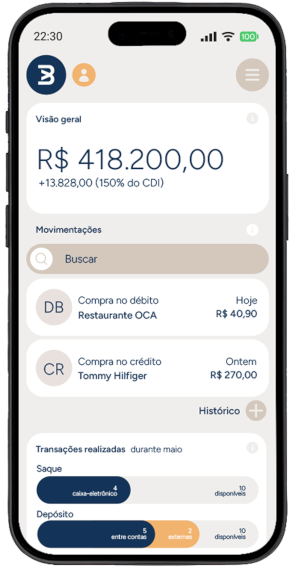 Baixe o aplicativo Bella Vista e tenha controle total das suas finanças, faça transações e acompanhe seus investimentos de onde estiver.